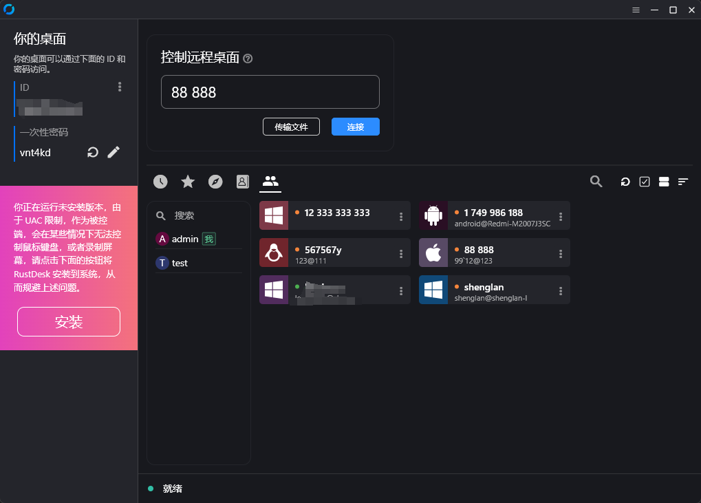 • 使用前后端分离,提供用户友好的管理界面,主要用来管理和展示。前端代码在rustdesk-api-web