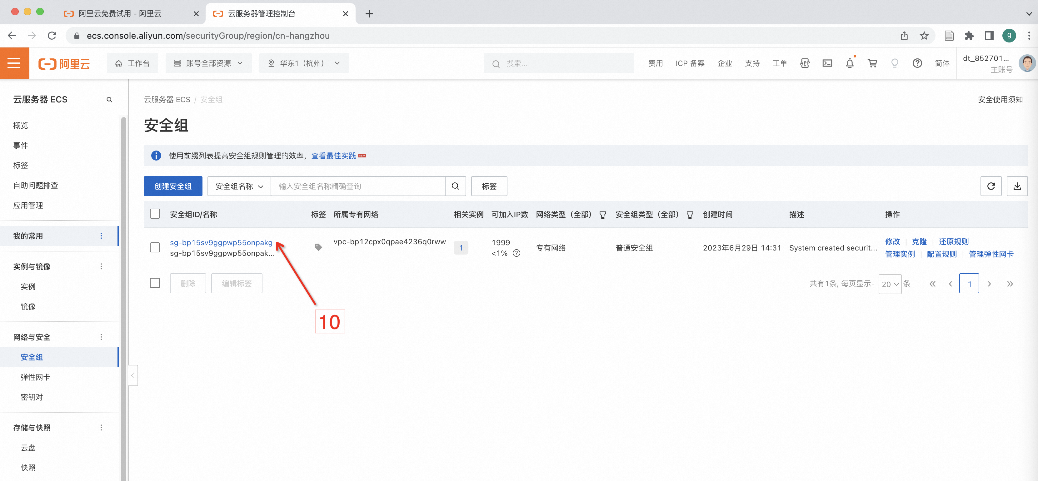 点击安全组(标号9),出现如下界面