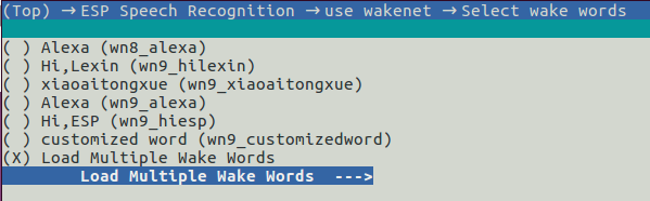 • If you want to select multiple wake words, please select Load Multiple Wake Words ( Note this option only supports ESP32S3) multi wake wake